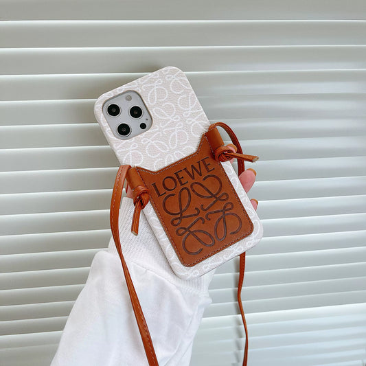 Luxury LOEWE Leather Wallet Case With Bracelet For iPhone 12-16 Pro
