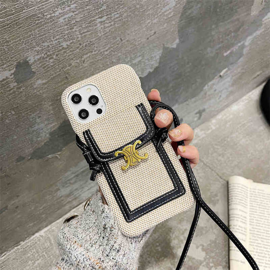 Trendy Canvas Crossbody Lanyard with Card Holder & Coin Purse for iPhone 16 Pro Max/15/14/13/12/11