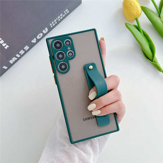 Wrist Strap Stand Clear Matte Case For Samsung S22 Series