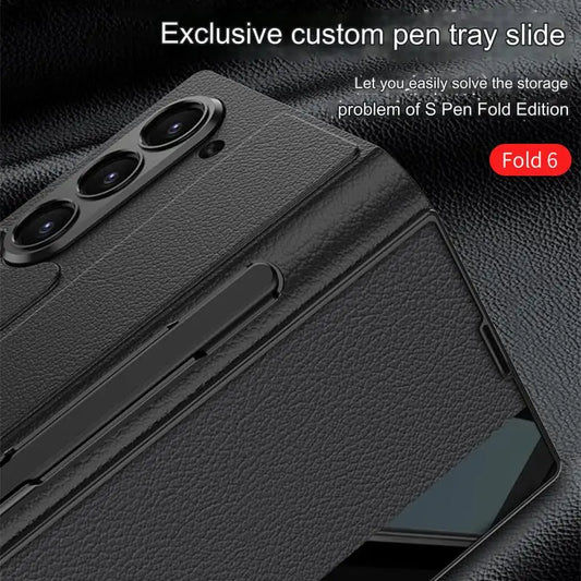 Vegan Leather S-Pen Flip Case for Samsung Galaxy Z Fold 6 | Built-in Glass Screen Protector & Card Slot Holder